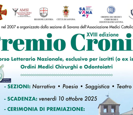 SAVONA - Il "Premio Cronin" è un concorso letterario nazionale, fondato nel 2007 dalla sezione "G.B. Parodi" di Savona dell'Associazione Medici Cattolici Italiani (AMCI),...